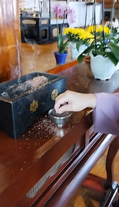 Todos os dias, no período da manhã, o monge do templo realiza uma missa dedicada aos antepassados. Essa é uma prática tradicional do budismo, na qual são oferecidas orações em memória dos falecidos, desejando paz, luz e bons caminhos espirituais.